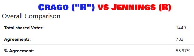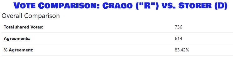 Barry Crago agrees with Democrat Liz Storer from Jackson way more than any of the conservatives!!