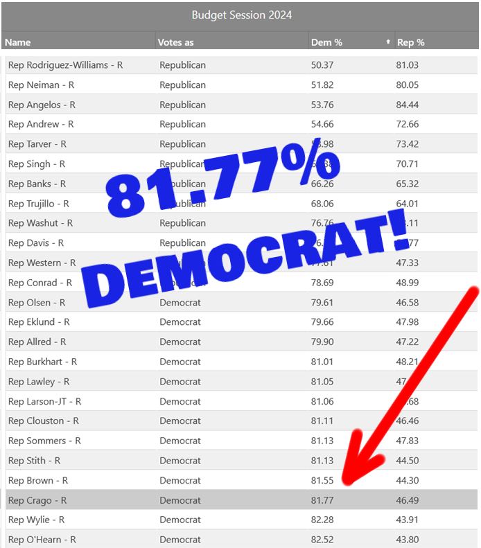 Crago Votes with the DEMOCRATS 81.77% of the Time!
